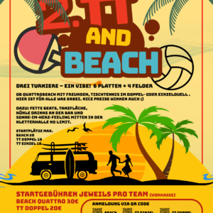 Nachtturnier in Leipzig Anmeldung via folgender Links https://148.webclimber.de/de/courseBooking/appointments/course_id/58 (TT Doppel) https://148.webclimber.de/de/courseBooking/appointments/course_id/57 (TT Einzel) https://148.webclimber.de/de/courseBooking/appointments/course_id/59 (Beach Quattro) Wen interessiert wer auflegt https://soundcloud.com/mr_buegel (DJ)