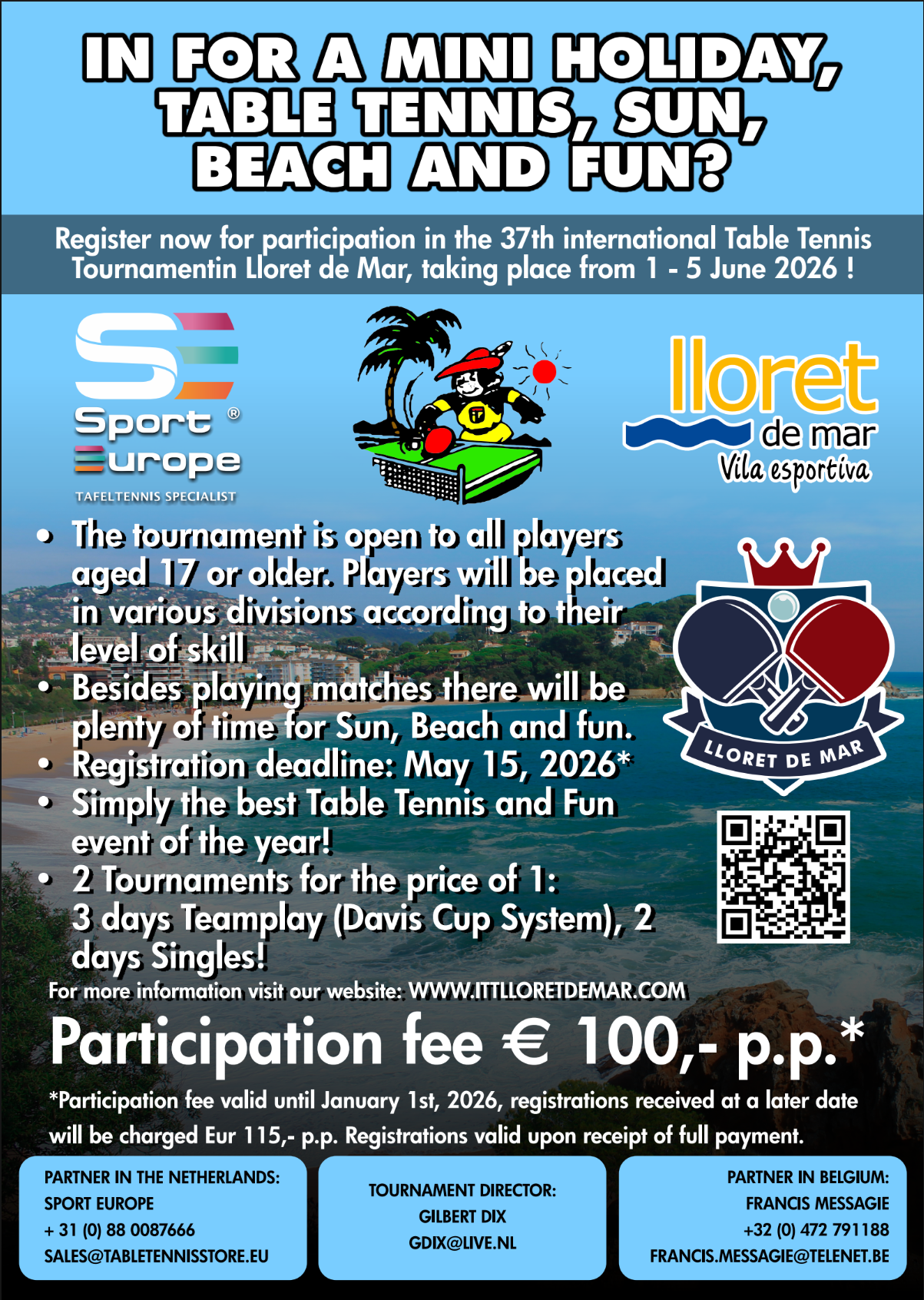 Registration and important information for the 2026 Lloret de Mar (Spain) TT tournament is now available!